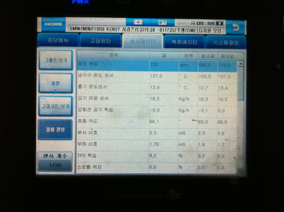계기판의 경고등을 죄다 삭제 해주고.. DATA값을 읽어본다...;;