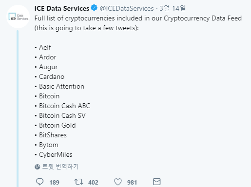 그리고 ICE(Inercontinantal Exchange) 입니다!