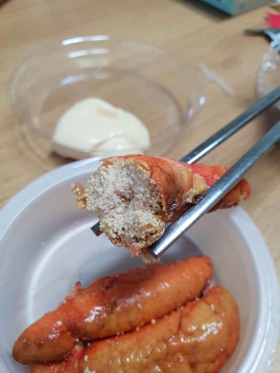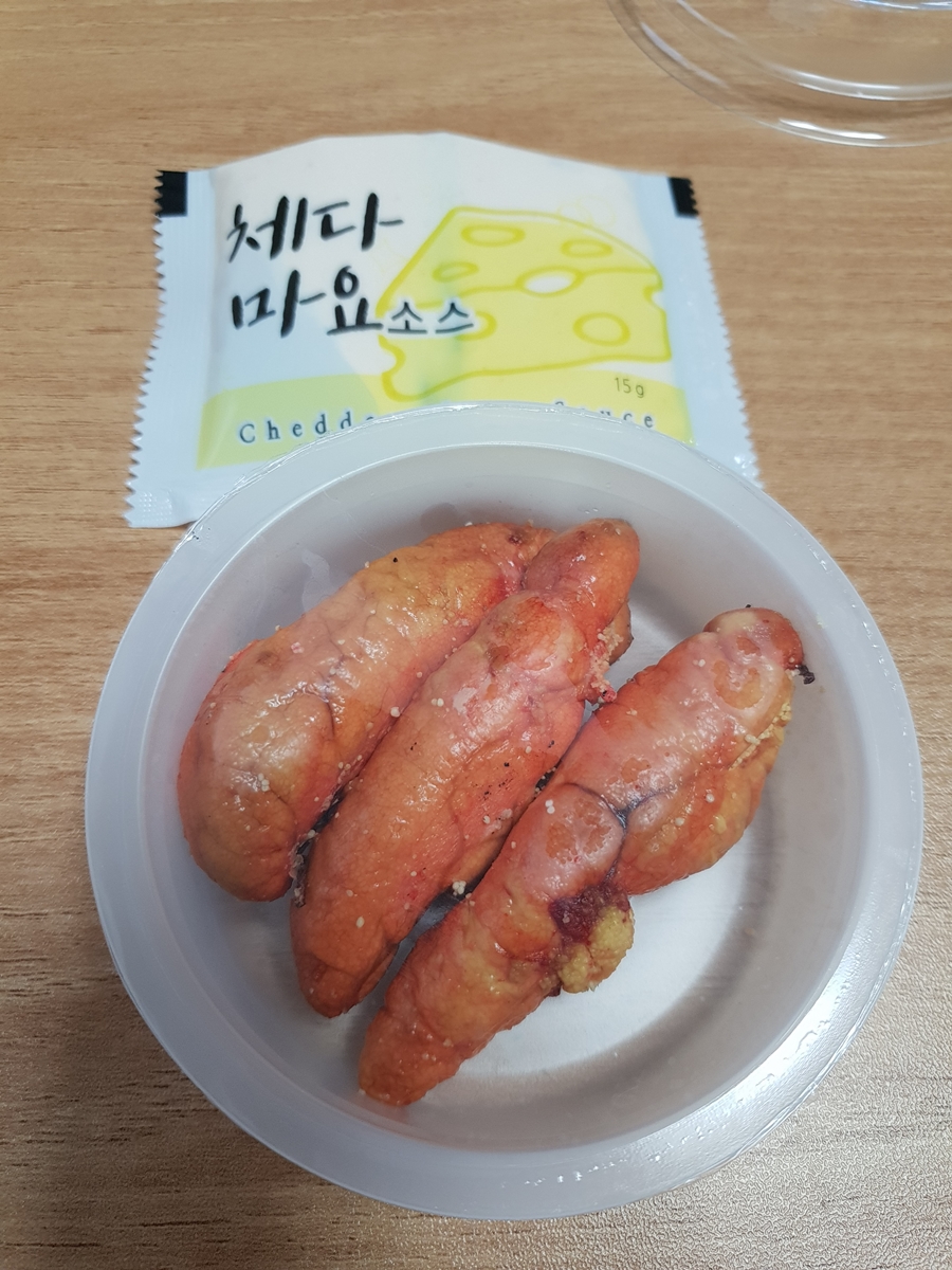 마요소스와 무슨 고구마 같이 생긴 구운 명란젓의 구성입니다