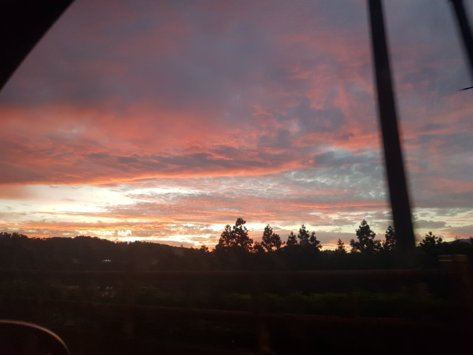 선녀탕을 뒤로 하고 밥먹으러 향하는 길에 하늘이 장관이었습니다. 핑크빛으로 물들어있고 바람이 많이 불어서 구름의 움직임이 빨라지고 있었습니다. 너무 예쁜 모습에 계속해서 우와 우와~~ 감탄사를 멈출 수 없었습니다 ^^