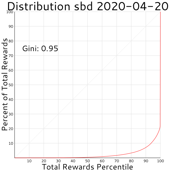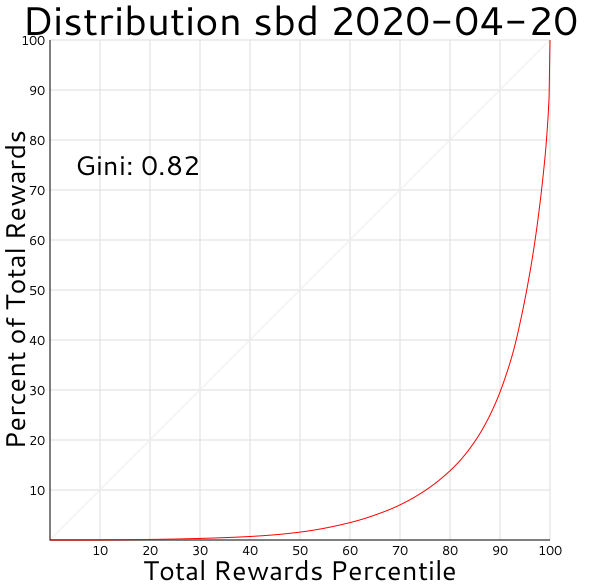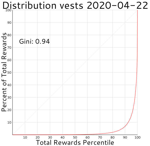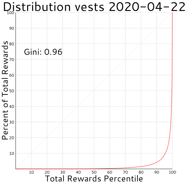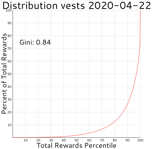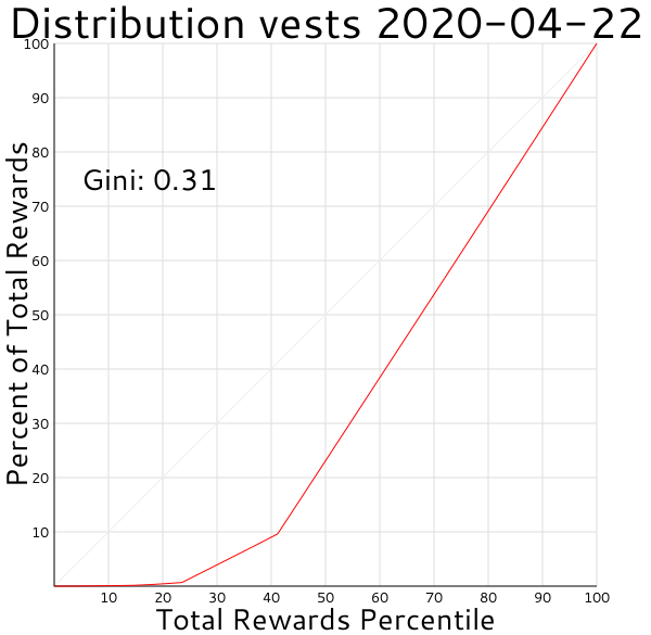 The last time I posted about my Lorenz Curve project I thought that it was basically doomed. At the time I thought that using the api interface to query the blockchain database for information about the reward-distributing virtual ops was just too slow to be practical. As I was looking at the api docs for other projects I realized that the getOperationsStream method could start from any block (I had assumed it would only be a stream of the "current" blocks), and I think this method is faster than the one-at-a-time querying I was doing. I've been working on a new script built around this approach. I ran it yesterday for a few hours and got a few days worth of data.