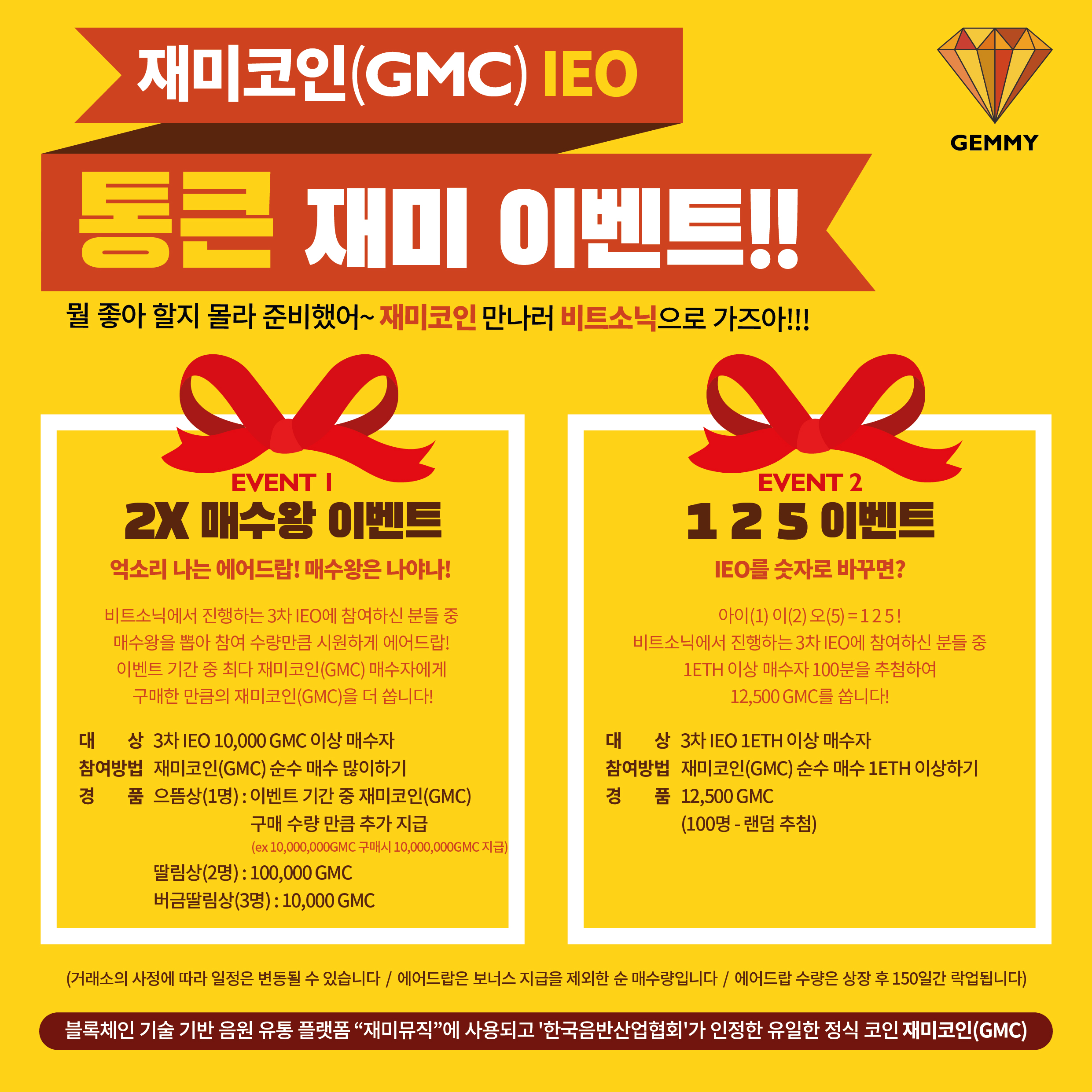 ※ 당첨자 발표 : 2019년 02월 01일 재미코인(GMC) 홈페이지 발표 (http://www.gemmymusic.com)