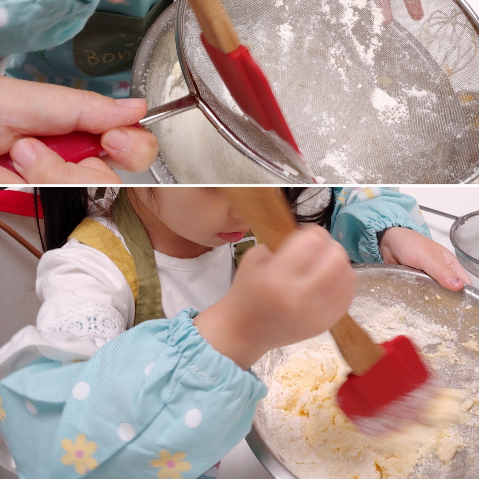 박력분을 채에 걸러서 넣은뒤 섞어주세요!