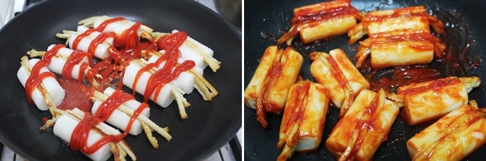어머..어묵을 그냥 꽂는게 아니라 채썰어서 떡 사이에 끼우다니..브릴리언트! 맛있는 간식이네요!