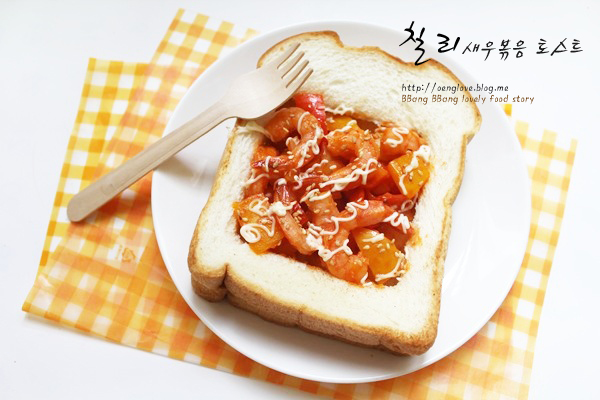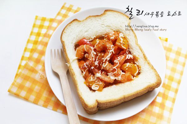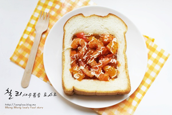 안녕하세요."러브"입니다. 즐거운 주말 보내고 계신지요? 주말이 되면 밥하기 싫으시죠?.전 그렇더라고요.. 그래서 밥하기 귀찮은 주말엔 간단하게 토스트를 해 먹습니다.집에 남은 칵테일새우가 있어서 칠리새우볶음과 함께 맛있는 토스트를 만들어 봤습니다.만들기도 쉽고 재료만 있으면 토스트로 후딱 만들어 먹기 좋습니다. 밥 대신 한 끼 식사로 손색없어요^^기존 토스트랑은 맛도 좀 달라서 색다른 토스트를 즐길 수 있을 거예요. 한 번 만들어 보세요.