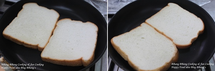 먼저 식빵2개를 팬위에 살짝 구워주세요!