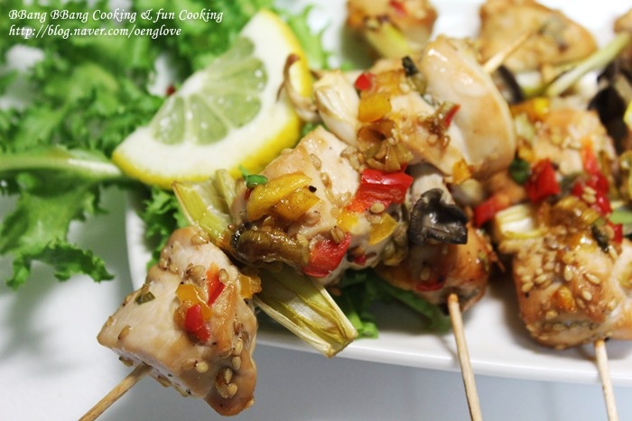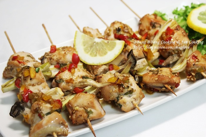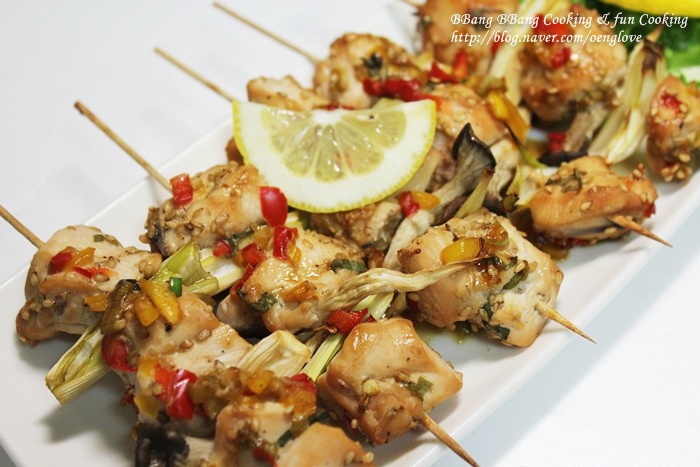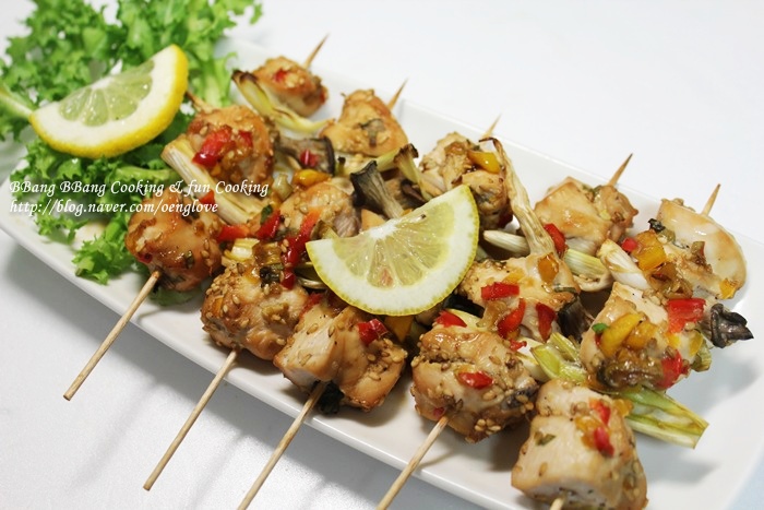안녕하세요."러브"입니다. 오지 말아야 할 월요일이 오고야 말았군요^^ㅋㅋ잘 보내고 계신지요 들~월요일은 참 싫은 요일 중에 하나인데.. 이런 날 전 더 맛있는 걸 찾게 되는 것 같아요. 먹는 걸로 스트레스를 푸는 스타일이라서 그런가 봅니다.맛있는 음식을 먹으면 그래도 잠시나마 마음이 행복해지고 복잡했던 머릿속이 정리가 되곤 합니다. 오늘 제가 가지고 온 레시피는 많은 분들이 좋아하는 꼬치 요리인데요 퍽퍽한 닭가슴살로 레몬간장소스와 곁들인 레몬간장소스 닭꼬치를 가지고 왔습니다.꼬치 요리는 술안주로 최고가 아닌가 싶은데요.. 꼬치 요리는 만들기도 쉽고 손님 초대 음식으로도 좋아서 빠지지 않는 메뉴인 것 같아요.어떻게 먹어도 맛있는 꼬치요리. 오늘은 레몬을 넣어 만든 간장소스와 함께 먹는 닭가슴살 꼬치를 가지고 왔어요.레몬간장소스가 굉장히 매력적입니다. 소스와 곁들어진 닭가슴살 꼬치 요리는 일품요리로 손색이 없는 듯합니다.만드는 방법도 사진을 보시면 알겠지만 전혀 어렵지 않고요.. 오븐에만 구워주면 됩니다. 단 오븐이 없이면 패스하셔야 해요^^오븐에 구워서 기름기도 쫙~빠져서 칼로리 부담도 없고 맛도 좋고 분위기 내기도 좋은 메뉴입니다. 만들어 보세요^^