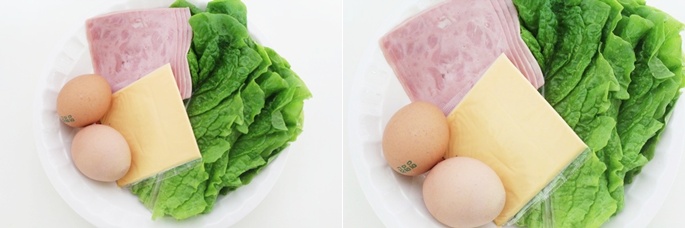상추.식빵(3개).계란(2개),슬라이스치즈(2장),슬라이스햄(3~4장),머스타트소스