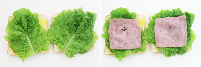 상추와 햄을 올려 주세요.