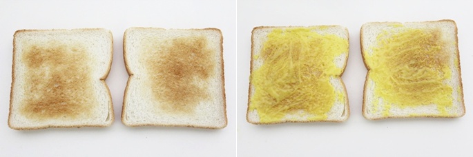 식빵은 먼저 구워서 준비해 주시구요!머스타드 소스를 발라주세요!