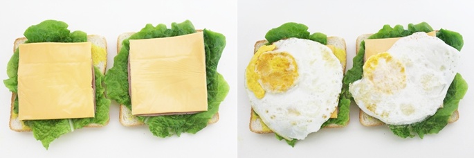 계란 후라이로 올리니까 뭔가 더 색달라보이네요! 간단히 해먹기 좋은 샌드위치군용!