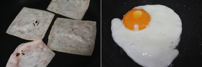 슬라이스햄과 계란후라이를 만들어서 준비해 주세요.