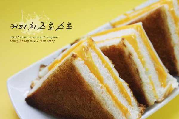 버터,커피(t2스푼),뜨거운물(2~3스푼),식빵(3장),슬라이스치즈(3장),