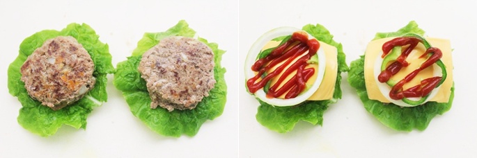 미니빵 위에 상추와 고기,치즈와 양파.피망을 올려 주시면 됩니다.마지막에 케찹과 머스타드 소스를 뿌려 드시면 되요^^