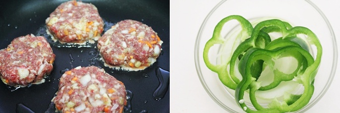 소고기를 팬위에서 구워 주시구요..피망과 양파는 얇게 썰어서 준비해 주세요