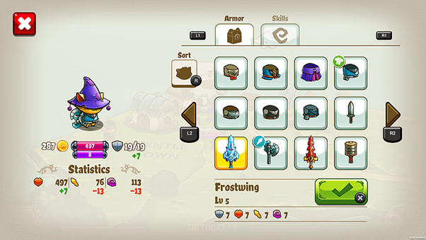 이게 무슨 말이냐면 던전상에 상자를 까거나 무기점에서 상자를 구매하면 랜덤 하게 장비가 나오는데 중복해서 나온 장비가 수치가 업그레이드 되는 형식이라서