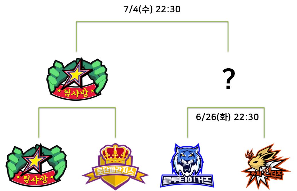 으로 팀샤방이 결승에 진출하였습니다.