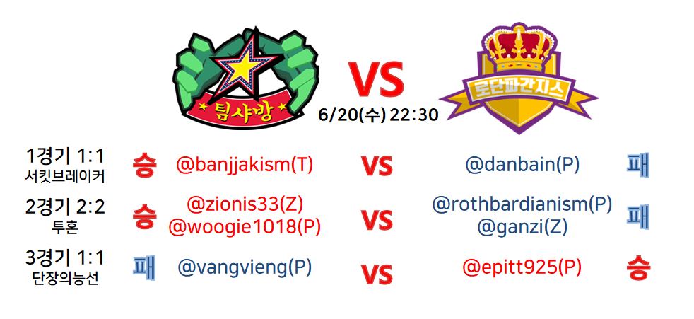 [결과보고 및 경기영상] 스팀잇 스타크래프트 프로리그 [팀샤방] VS [로단파간지스]