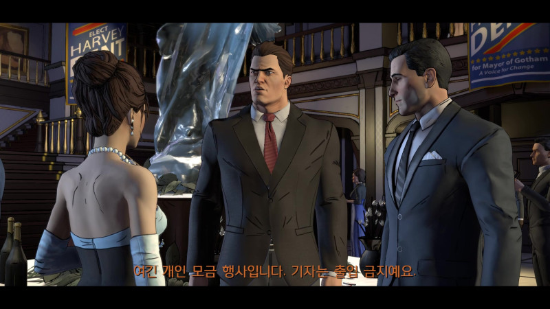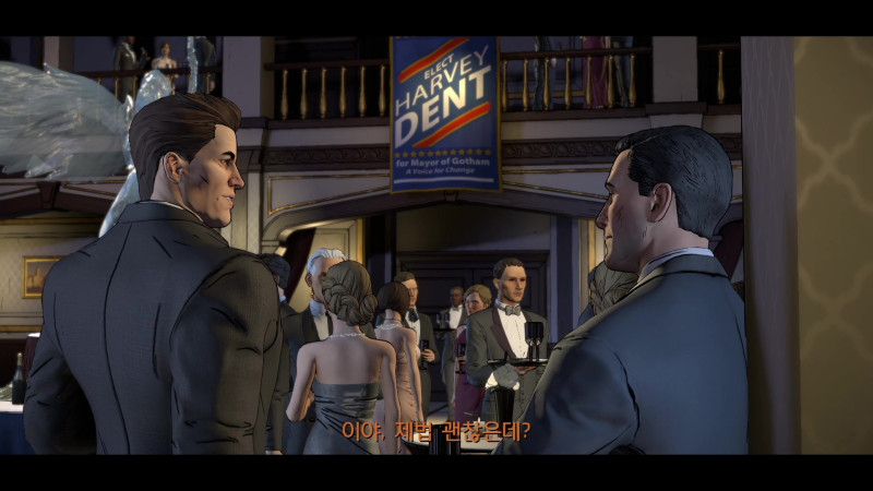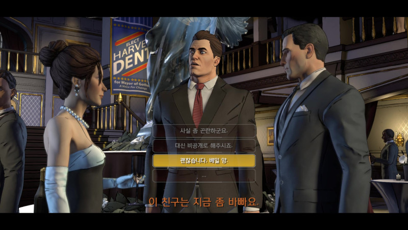 브루스 웨인이 워낙 유명인사에다 돈도 많아서 그런지, 하비덴트는 웨인을 등에 업어 선거에 이기고 싶은 모양이다.