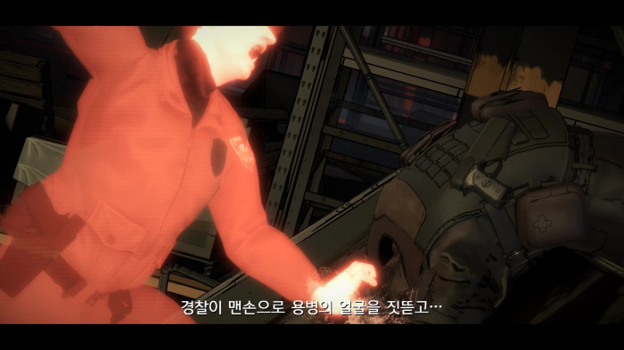 널부러져있는 시체들 중 절반은 경찰, 절반은 저번에 시청에서 봤던 무리들.