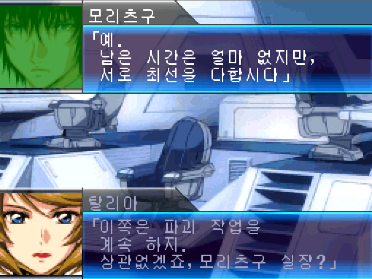 모리츠구 : 예. 모빌슈츠를 구출하는 대로, 이쪽으로 오라고 전해뒀습니다. 갑작스러운 부탁이긴 합니다만, 이해해 주시길.