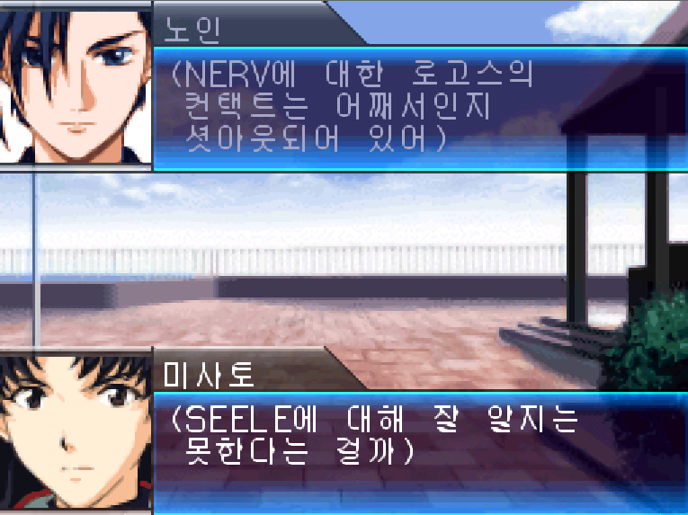 노인 : (혹은, NERV가 힘을 키우면 곤란한 조직이 자금 유입을 컨트롤하고 있다, 는 건가. 레이디가 말했던 로고스는 아니야... NERV에 대한 로고스의 컨택트는 어째서인지 셧아웃되어 있어.)