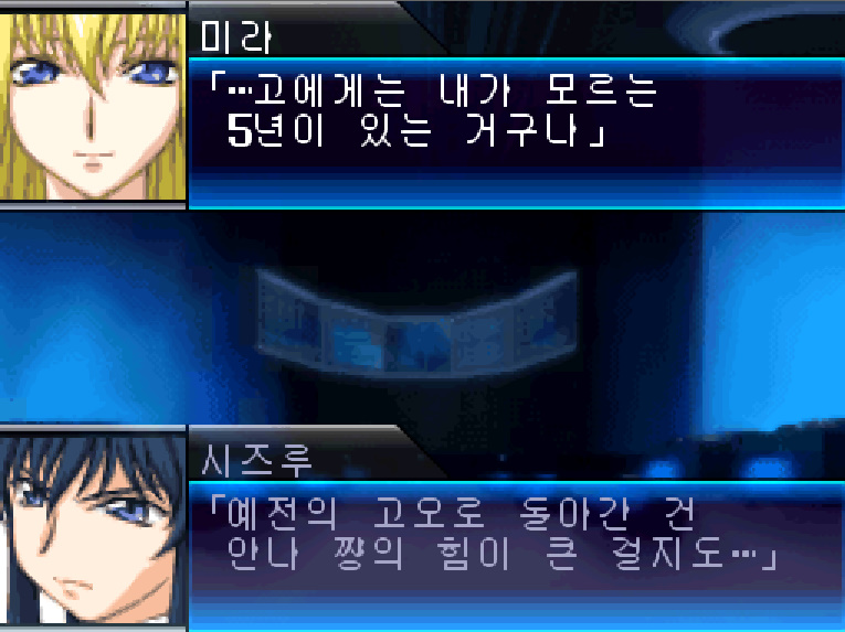 네오 : ...(2기의 디스트로이라... 1기는 스팅을 태울 수밖에 없고... 그렇다면 남은 하나는 에이전트가 디오키아 기지에서 구출한 스텔라... 그녀를 태울 수밖에 없겠군... 나도 참 내키지 않는 일을 하는군, 정말이지.)