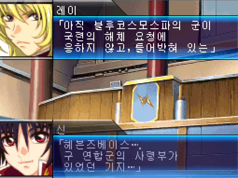 레이 : 아직 블루 코스모스파의 군이 국련의 해체요청에 응하지 않고, 틀어박혀 있는 기지이기도 해.