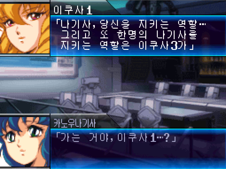 이쿠사1 : 당신을 죽게 놔둘 수는...! 아윽...! 이쿠사3... 무사합니까...? 네오스골드...! 당신의 생각처럼은 되지 않습니다!