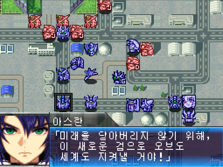 아스란 : 난 더 이상 힘을 행사하는데 망설이지 않겠어! 미래를 닫아버리지 않기 위해, 이 새로운 검으로 오브도 세계도 지켜낼 거야! 그게 나 자신의 결단이다!
