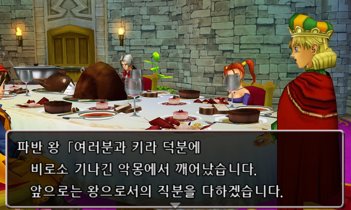 트로데 왕 : 자네들은 좋겠구먼. 파반 왕한테서 융숭하게 대접도 받고 즐거웠겠구먼... 맛있는 음식과 술도 잔뜩 먹었겠지? 부럽구먼 그래... 그러는 동안 나와 공주는 마을 밖에서 기다리다 지쳤다네. 아아, 불쌍한 내 신세...