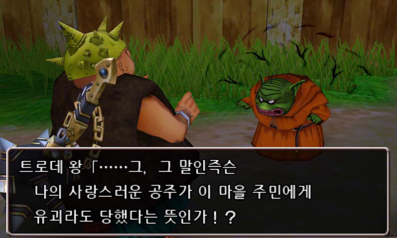 트로데 왕 : ...그, 그 말인 즉슨 나의 사랑스러운 공주가 이 마을 주민에게 유괴라도 당했다는 뜻인가!?