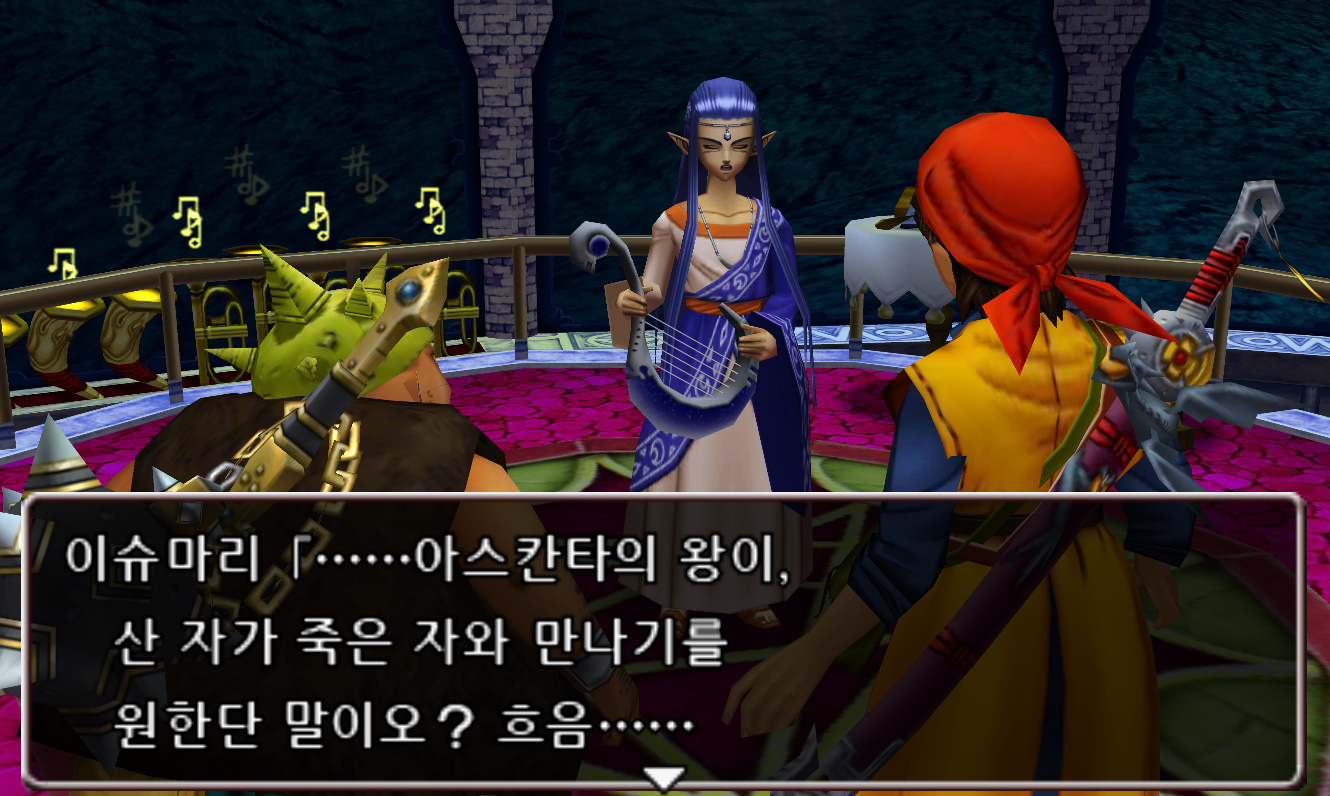 이슈마리 : 비탄에 잠긴 왕이여. 이 방에 새겨진 과거의 기억을 달빛 아래에서 다시금 되살려 주겠소...