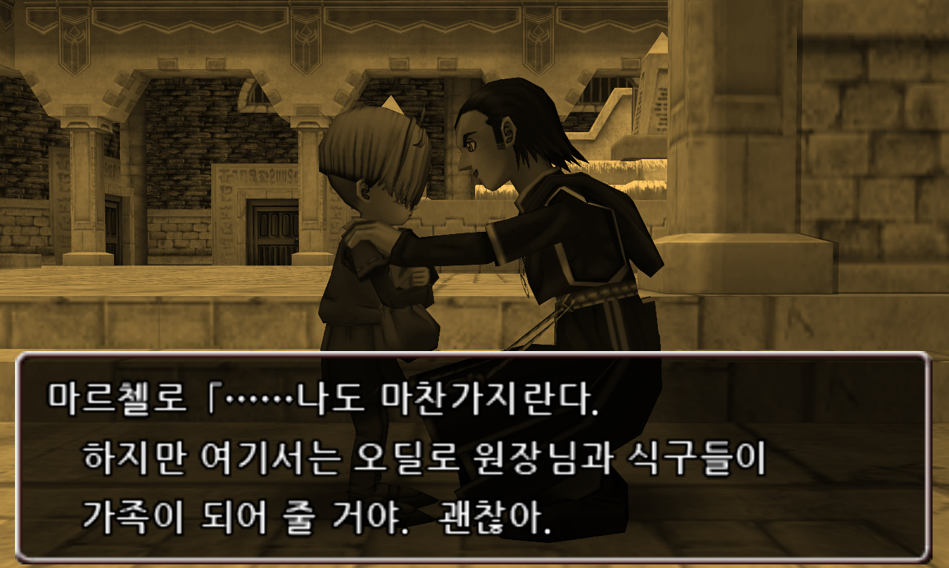 마르첼로 : ...나도 마찬가지란다. 하지만 여기서는 오딜로 원장님과 식구들이 가족이 되어 줄 거야. 괜찮아.