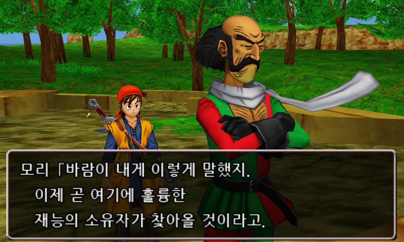 모리 : ...오오, 말까지 걸어 줬는데 무시해서 미안하군. 자네의 이야기에도 귀를 기울이도록 하지. 내 이름은 모리. 지금은 여기서 바람의 이야기를 듣고 있었다네. 바람이 내게 이렇게 말했지. 이제 곧 여기에 훌륭한 재능의 소유자가 찾아올 것이라고... 보이, 자네는 여행자로군? 그렇다면 보이에게 부탁을 하나 해볼까. 우선 이것부터 받아 주게나.