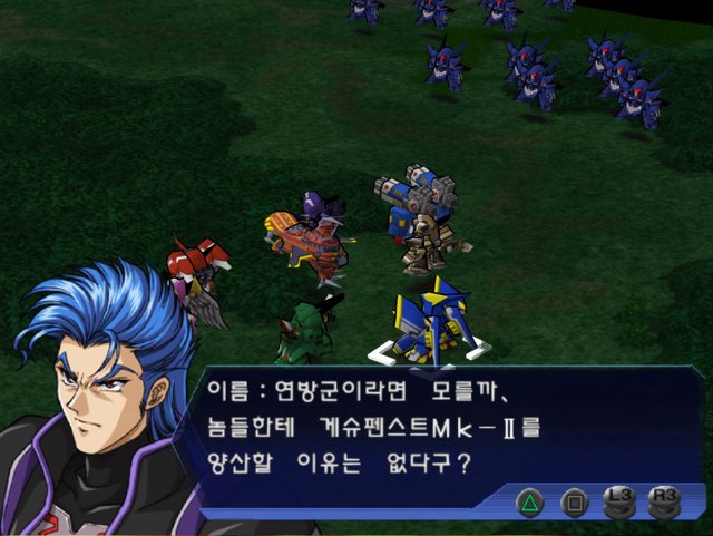 리 : ! 쫓아왔느냐...! 즉시 PT 부대를 출격시켜라! ...플래티넘1로부터 각기에. 본함은 전투공역에서의 이탈을 우선하겠다. 너희들은 적기에게 반격을 실시해라. 어떻게해서든 본함을 지켜내야한다.