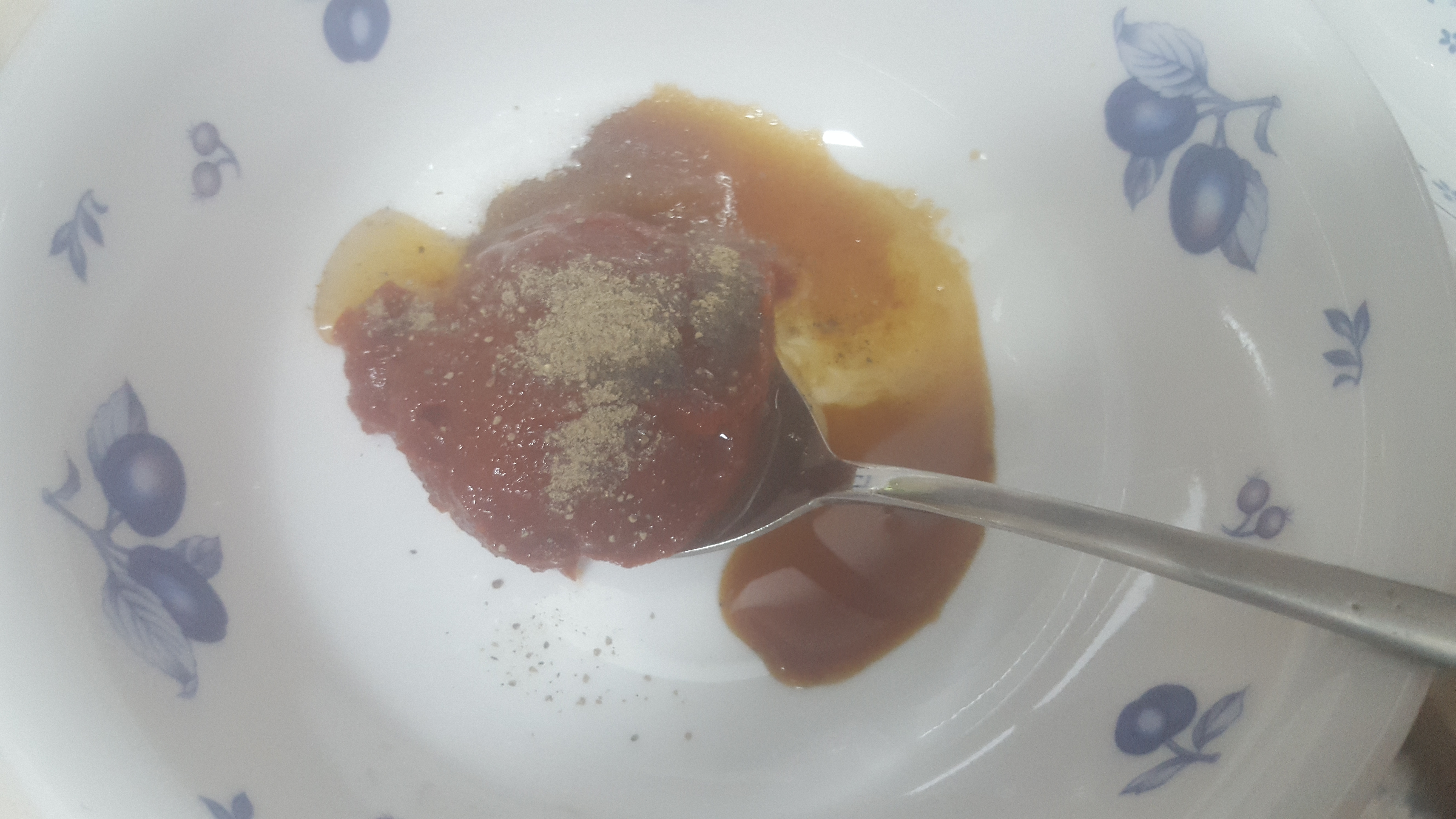 고추장 한스푼, 설탕 조금, 간장 조금, 물엿(나는 없어서 꿀로 대체)조금