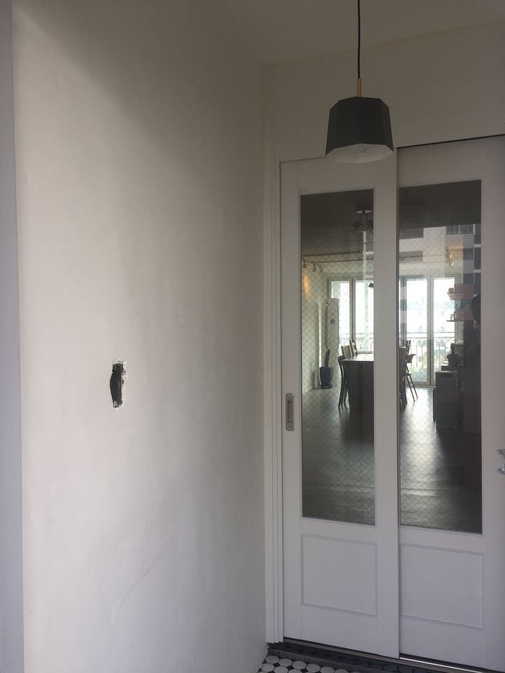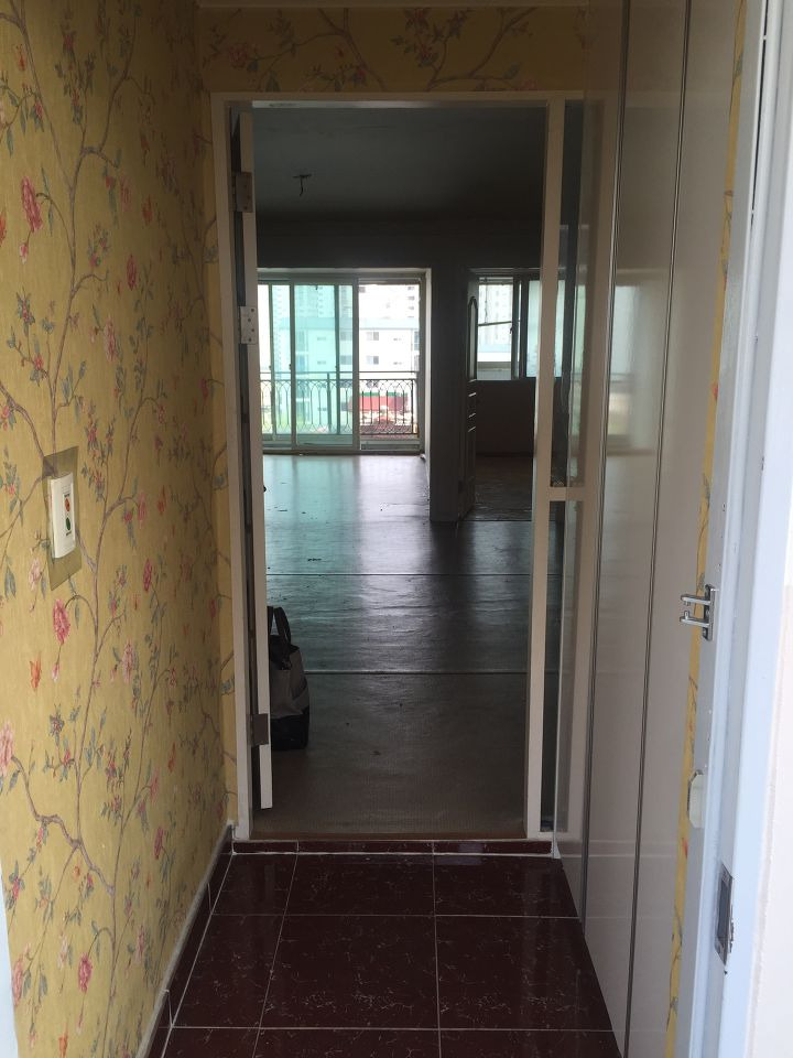옛날 아파트라 비 좁은 현관에 문은 여닫이식이라 아깝지만 신발장 역시 전부 철거합니다. 맞바람이 칠 때 굉장한 소리로 닫히는 여닫이 중문 또한 철거합니다. 벽지 또한 모두 벗겨 냈구요. 벽지 벗겨 내는 작업이 집 인테리어 중 가장 힘들었습니다ㅜㅜ