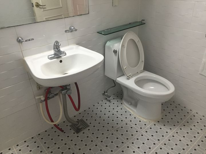 바닥 타일은 작은 모자이크 타일로 시공했구요. 세월의 흔적으로 인해 덧방에 덧방을 더했던 타일들을 전부 철거하고 바닥 레벨링부터 다시 하고 시공하였습니다. 그리고 조명으로는 기존 나오는 센서등 중에서 마음에 드는 것을 찾기가 힘들어 펜던트 등에 led 센서 감지기를 연결하여 센서등으로 활용하였고, 스위치가 있던 곳은 철거하여 노출로 그냥 두었습니다.