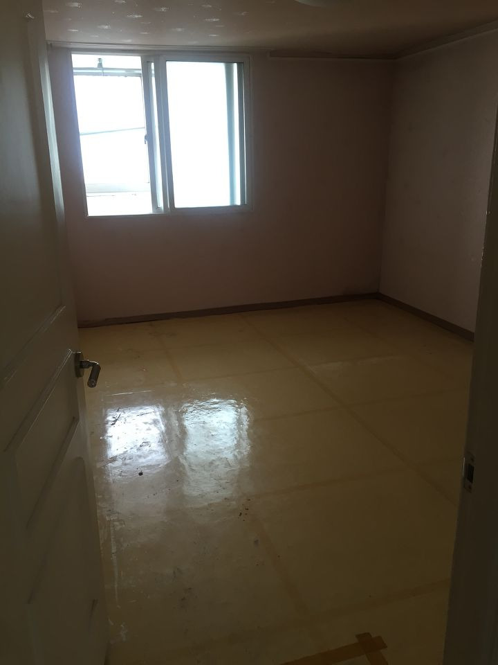 큰방 역시 모든 벽면에 벽지를 떼어내고 복도 쪽과 베란다 쪽엔 단열을 해줍니다! 물론 마감을 해준 곳으로는 전기와 랜선이 지나갑니다^^