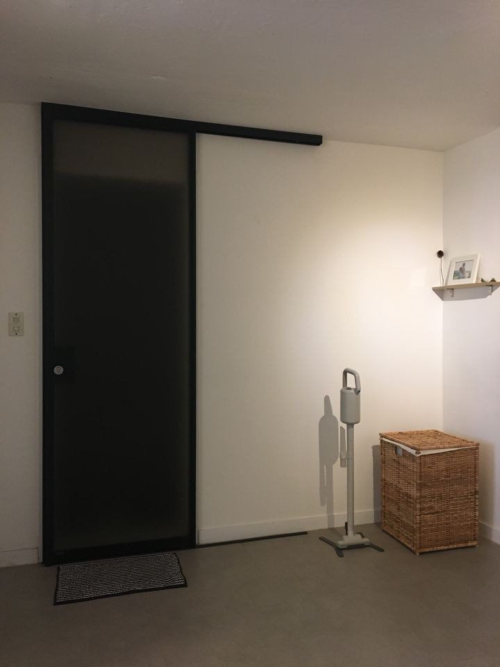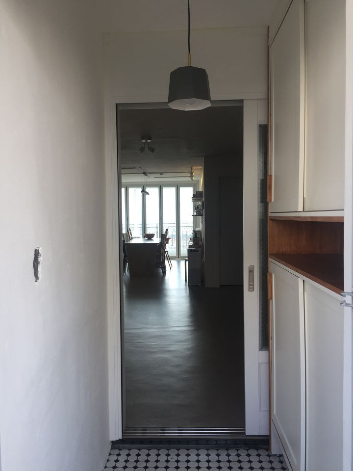 오래된 복도식 아파트라 그런지.. 현관의 공간이 좁았습니다. 입구를 조금 더 편하게 쓸 수 있도록 슬라이딩 도어의 신발장으로 구성했구요. 기존의 하이그로시 재질로 이루어진 장의 문들은 맘에 들지 않아 원목으로 구성하여, 무광으로 도장하는 방식을 선택했습니다.