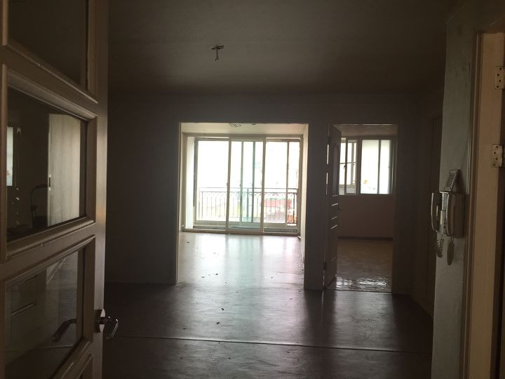 원래는 방이 3개인 구조의 집입니다. 공사를 하면서 방과 주방을 구별해주는 벽돌로 미장된 벽을 철거하였습니다. 세월의 흔적으로 너무나 낡아 버린 샷시 또한 철거하였구요.