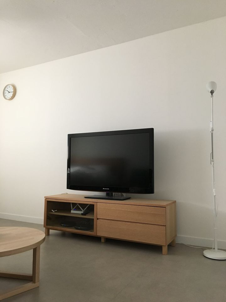 거실테이블 : 개인셀프제작 / 의자, 수납장, 연필꽂이, 아이패드 받침대 : 이케아 / CDP, 스피커, A4꽂이 : 무인양품 / 공기청정기 : 발뮤다