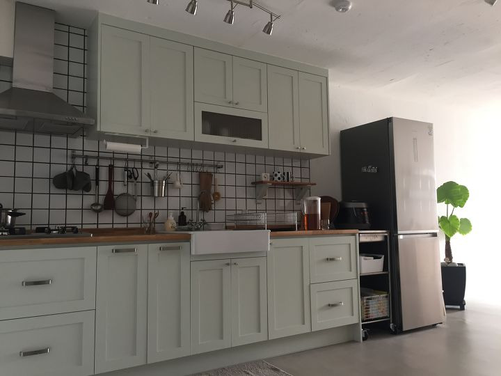 주방은 홈 인테리어에 가장 중요한 부분이라 생각됩니다. 특히 집에서 많은 요리를 해먹고, 베이킹을 하고, 커피를 내려먹는 저희집 같은 경우에는 더더욱 그렇구요. 그래서 주방을 보면 이뻐서 잘 관리해주고 싶을 정도로 만들고 싶었습니다 :) 싱크대의 상판은 튼튼한 애쉬집성목을 택했구요. 대리석과 다르게 관리는 불편하지만, 감성 하나는 정말 좋은 것 같습니다^^