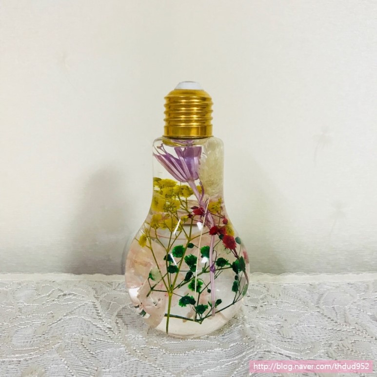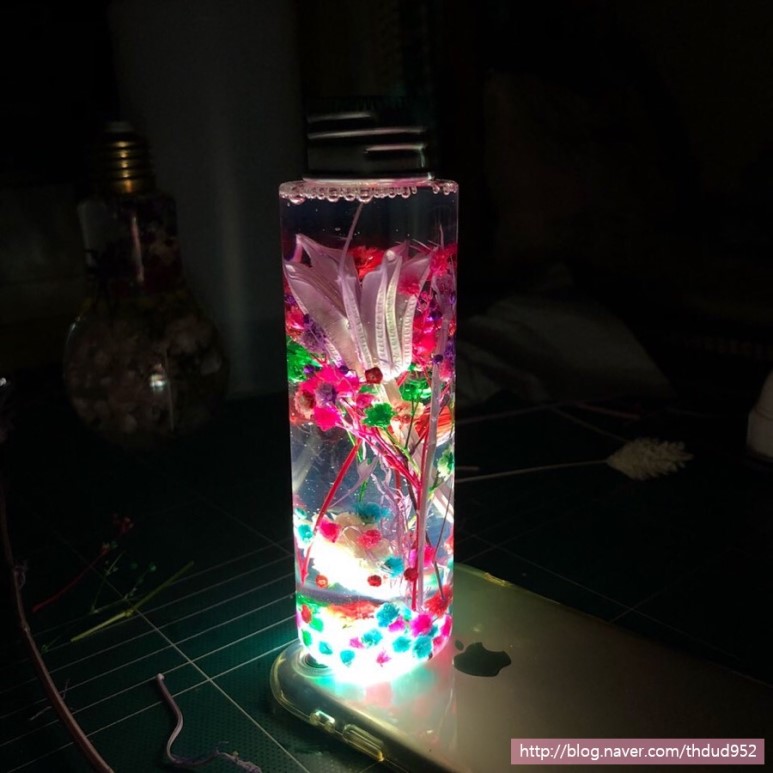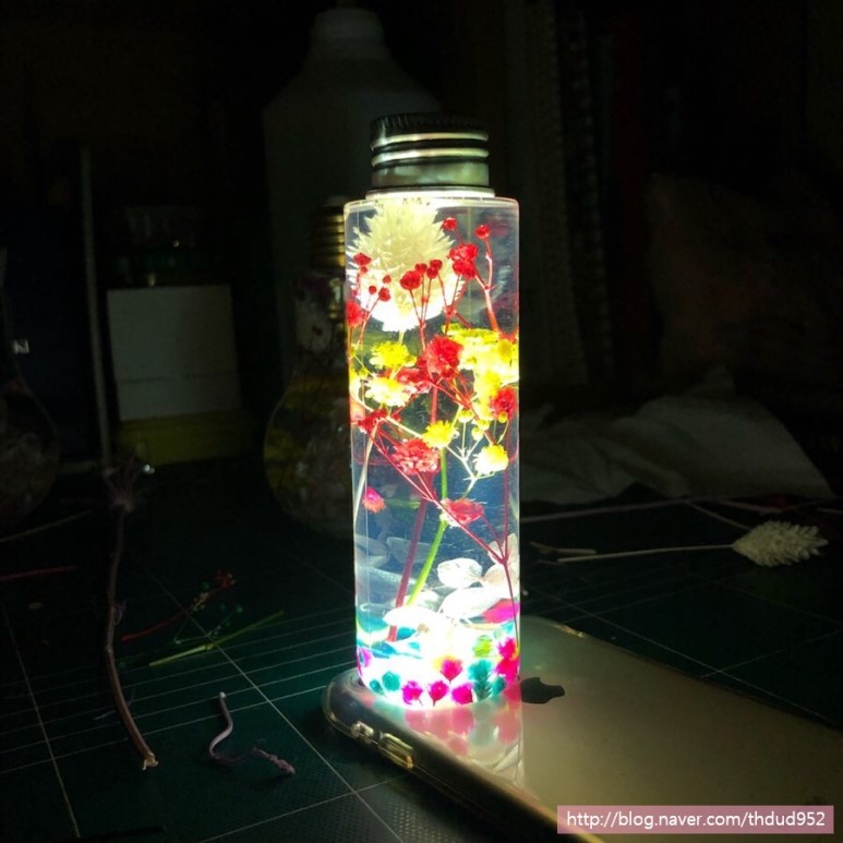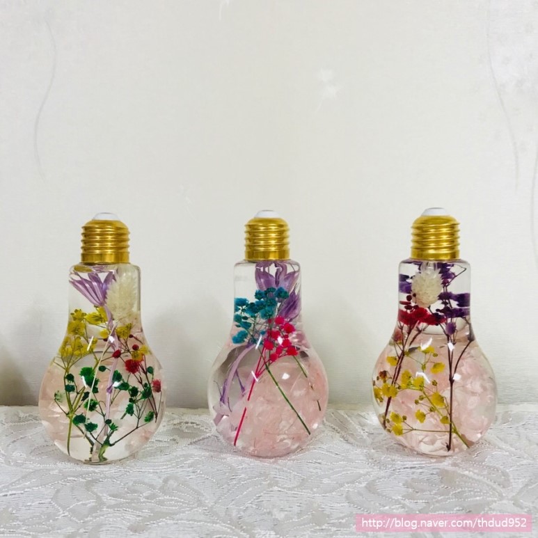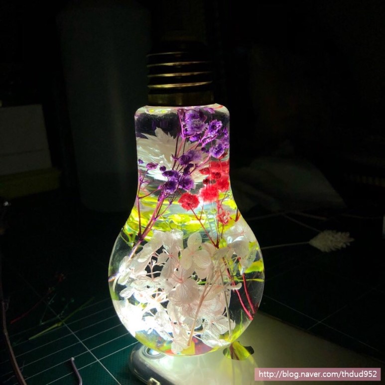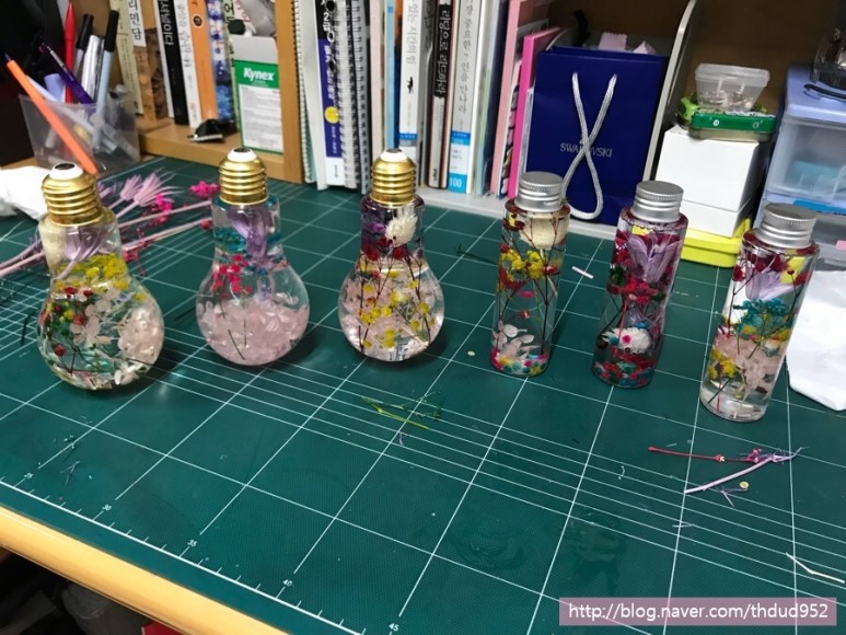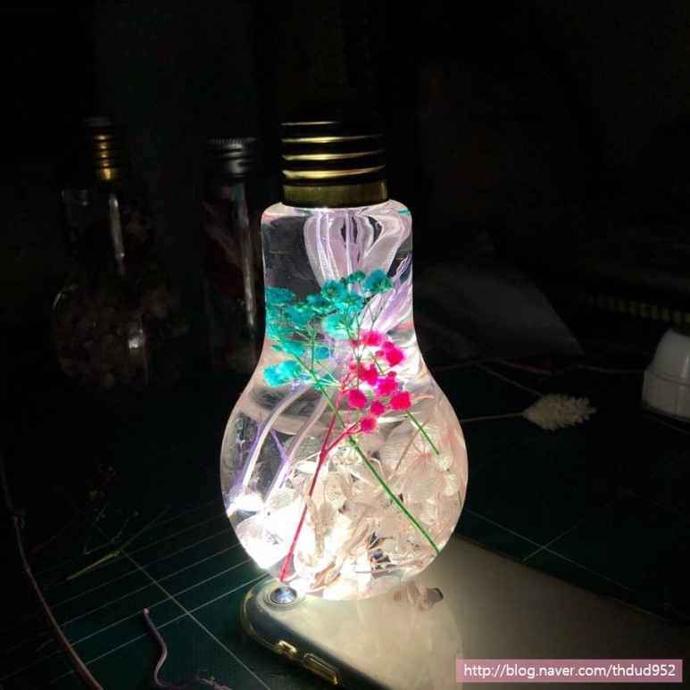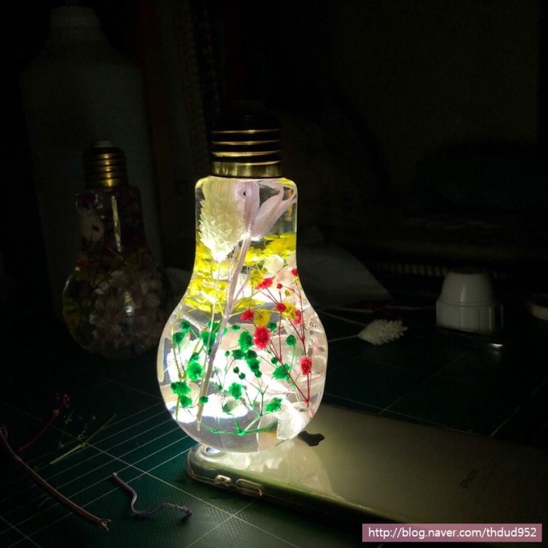 전구모양 하바리움들을 다 만들고 찍은 사진 입니다 !