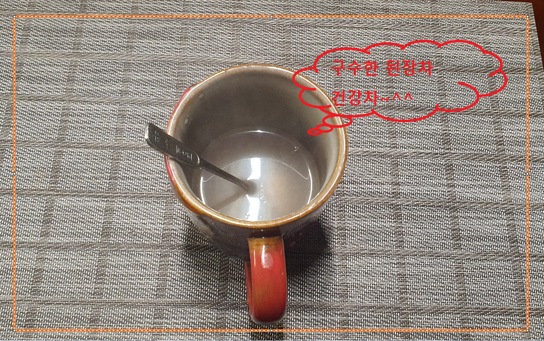 그 후 요렇게 티스푼으로 한 개 정도를 따뜻한 물에 잘 풀어서 아침마다 차로 마시면 된다. 구수한 된장 차 생각보다 맛도 좋고 구수하니 기분도 참 좋아진다.