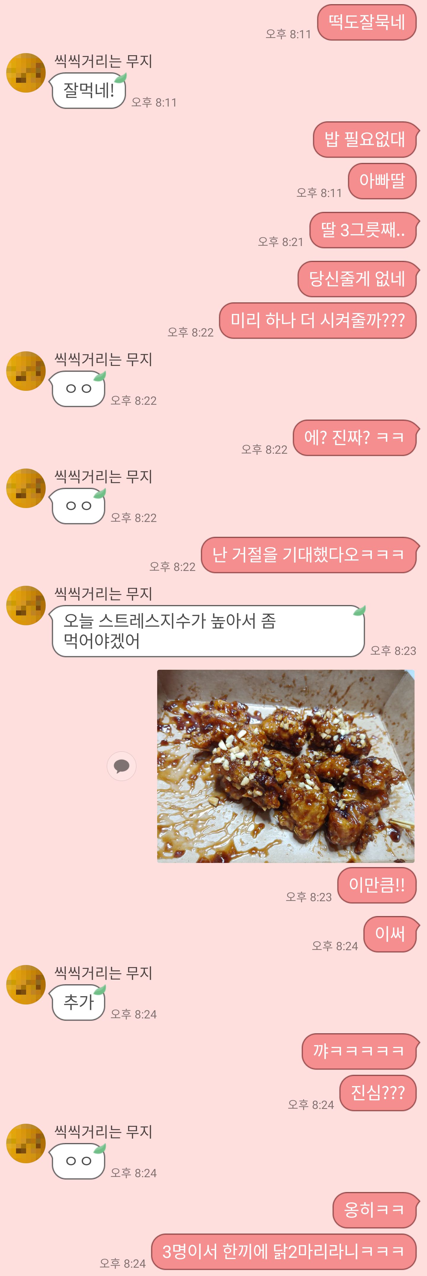 ㅋㅋㅋㅋㅋㅋㅋㅋㅋ 5살딸과 셋이서 닭2마리!!!!