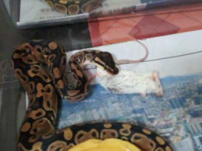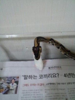 애완용 뱀 볼파이톤(비단구렁이)의 먹이먹는 모습^^
