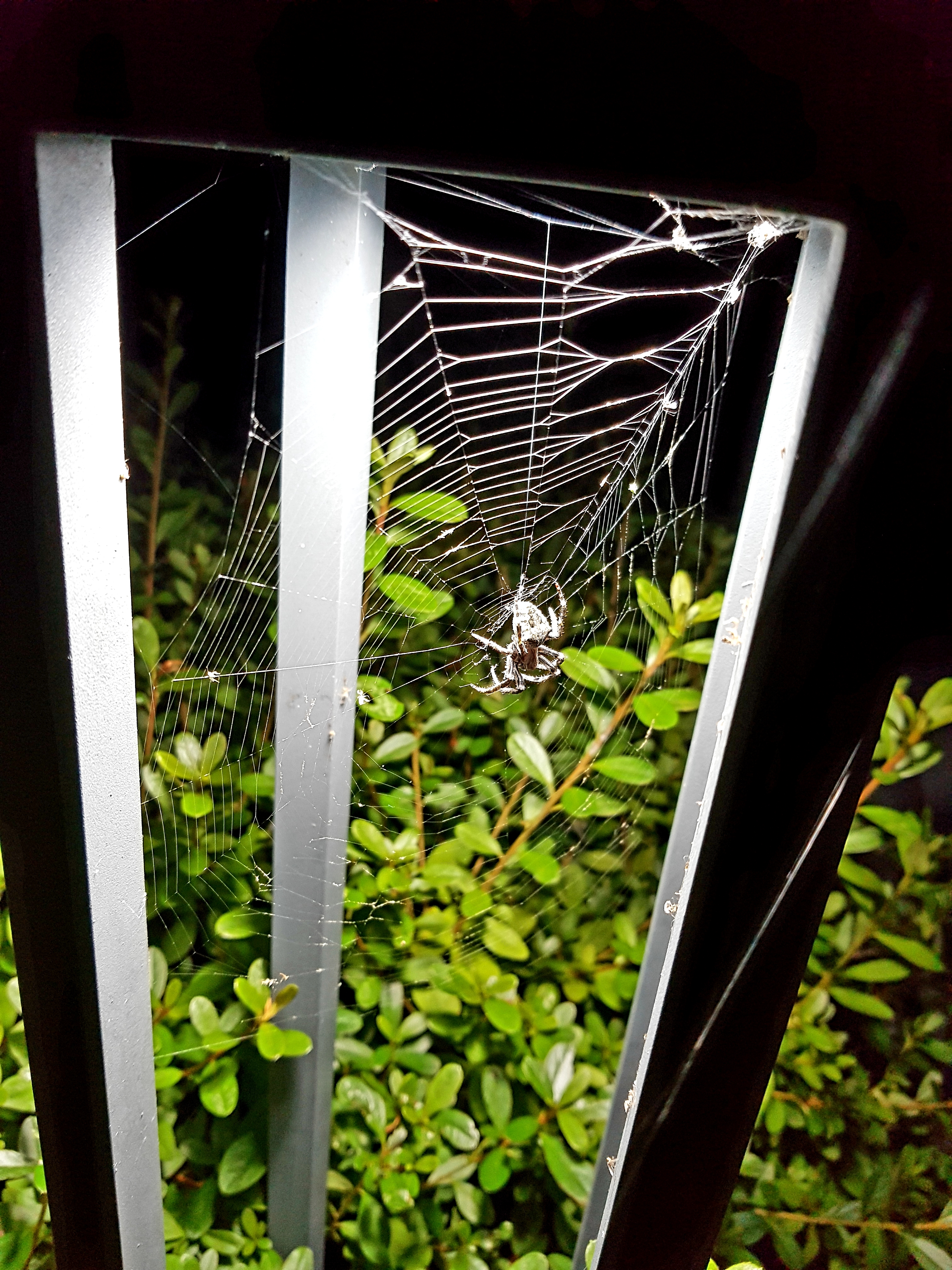 거미가 아주~영리하게 불빛이 있는 곳에 거미줄을치고~