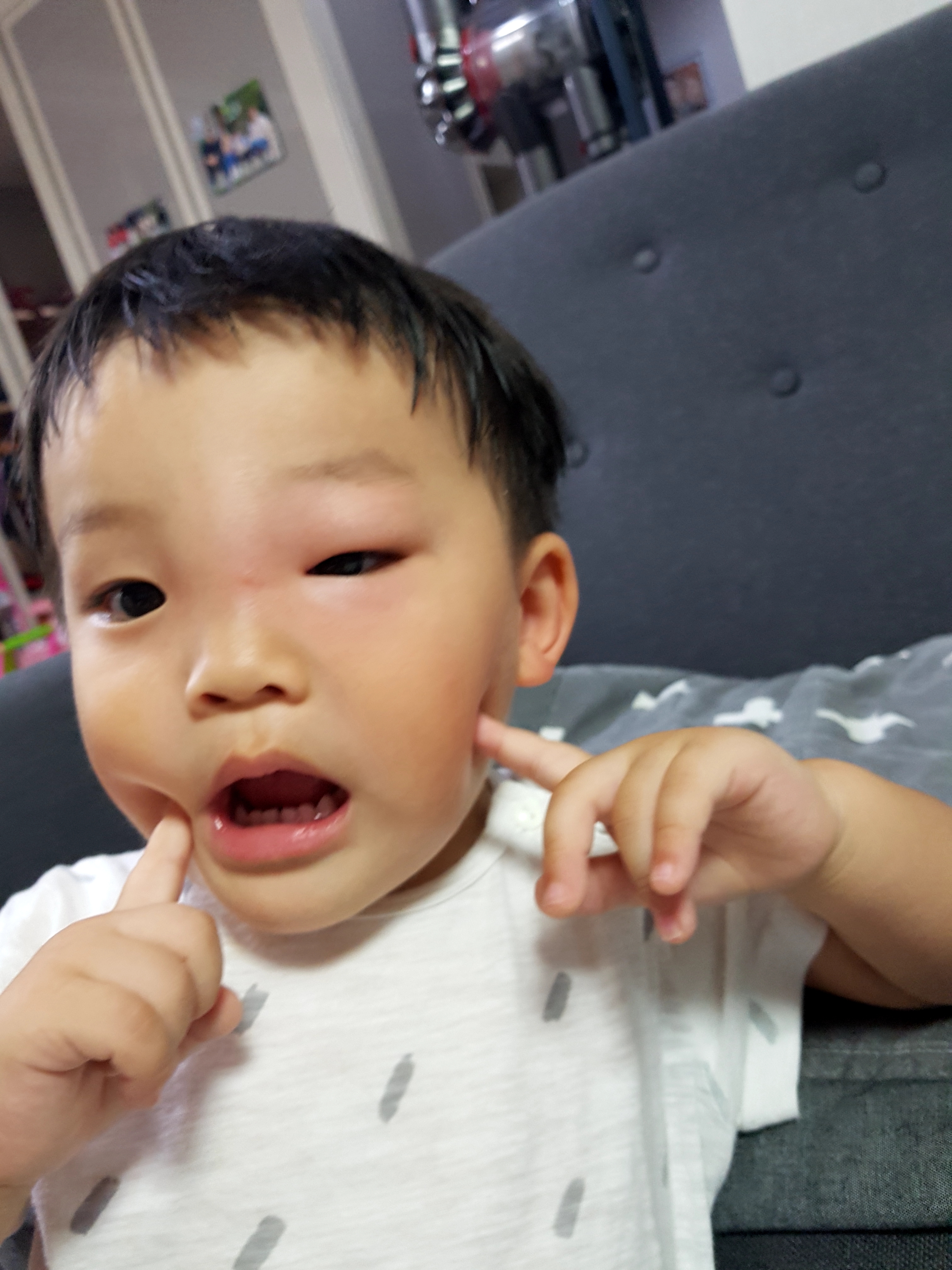 요즘 모기가 독한건지.. 애들이 모기 한 번 물리면 엄청 붓더라구요. 눈 사이에 물려서 간지럽고 아프겠어요. ㅠㅠ 모기 때찌!